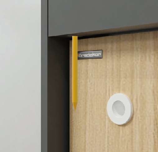 • 紧急救助功能:特殊情况时使用铅笔等物品轻松触动门楣下口的安全销,即可将门扇及上框整体全部反向打开,实现救助功能。