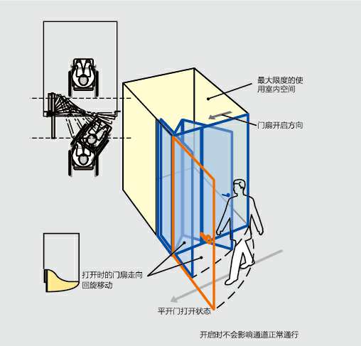 • 适用于盥洗室或空间有限的场所,提高出入空间利用率。